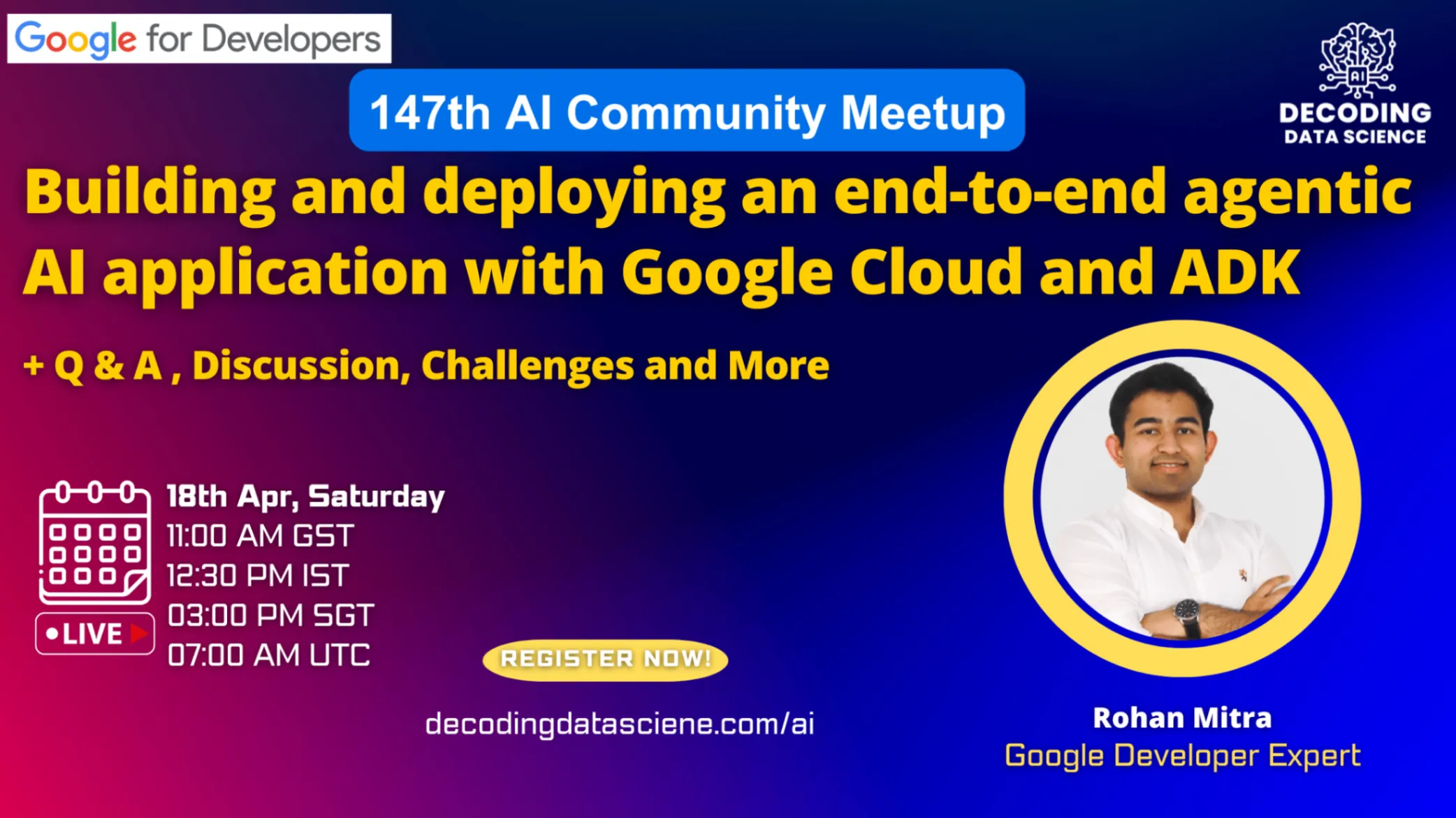Rohan Mitra: Google Developer Expert - Cloud AI, Machine Learning Engineer @ Bayut & Dubizzle, Research Assistant for ML @ Canadian University Dubai.