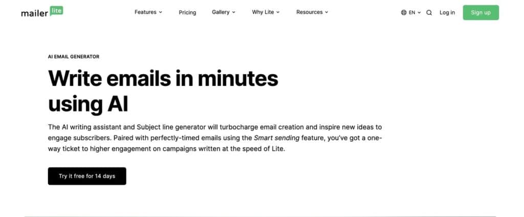 MailerLite is an email marketing and website-building platform that helps businesses grow their audience and revenue. Its AI-powered features offer help with a range of tasks such as copywriting, A/B testing, automation, and segmentation, and are useful for those looking to set up easy email campaigns.