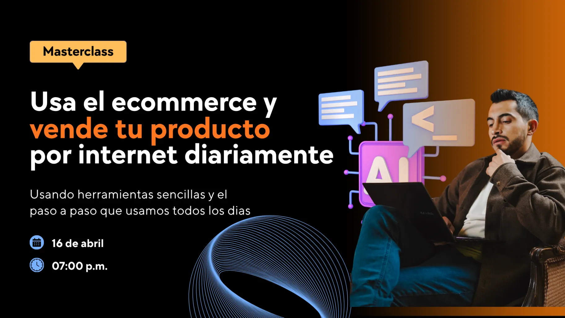 Al terminar esta Masterclass vas a tener un mapa claro de cómo funciona la venta online y los recursos exactos para arrancar. Sin rodeos, sin teoría innecesaria. Solo lo que necesitas para probar tu producto en el mercado esta semana.