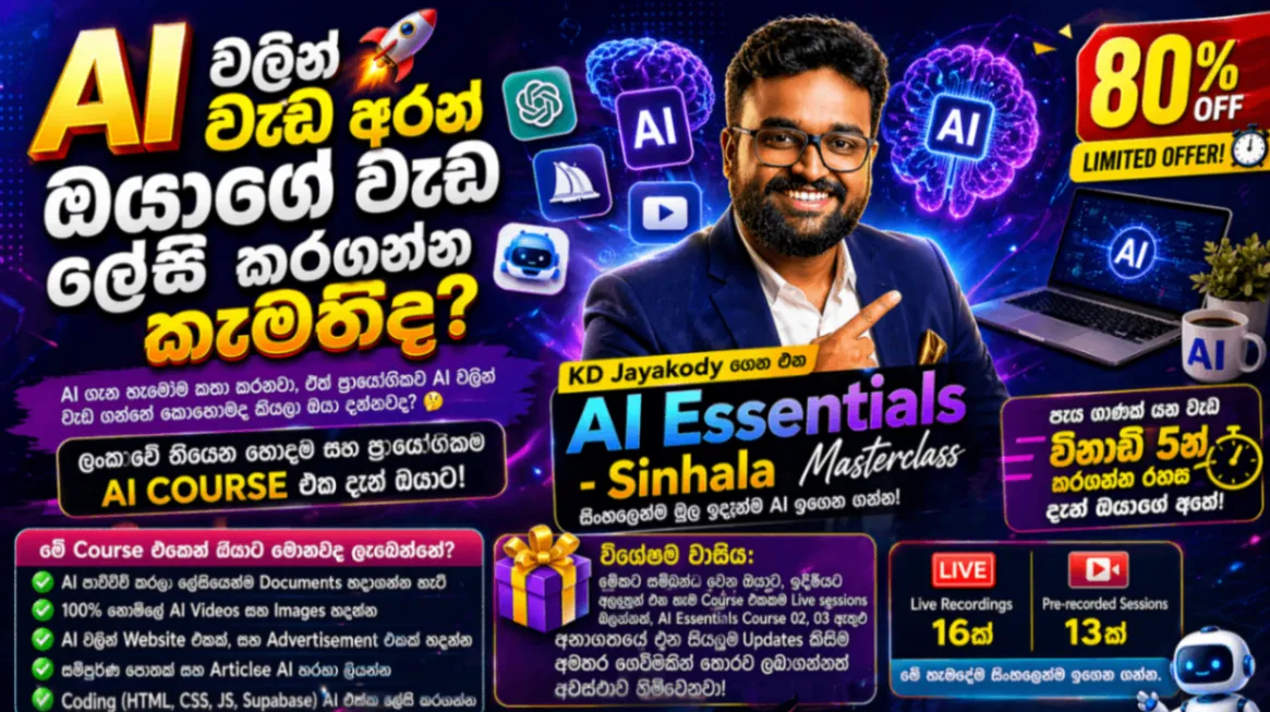 🚨 100% නොමිලේ ලයිව් කරන ලංකාවේ එකම AI Course එක (AI Essentials - Course 01 - Day 01🚨 රෑ 9ට හරියටම සෙට් වෙන්න. පරක්කු වෙන්න එපා! දන්න නොදන්න හැමෝටම කියනන් මචං.