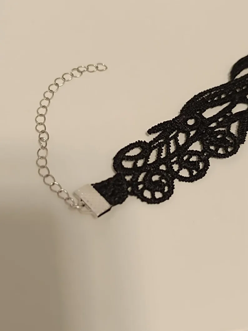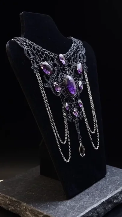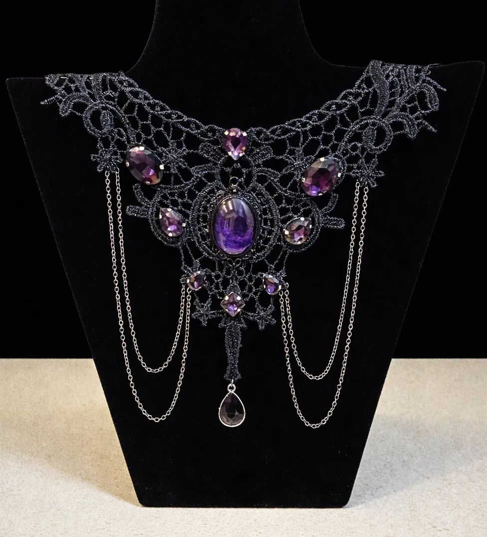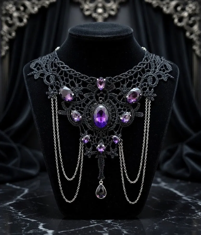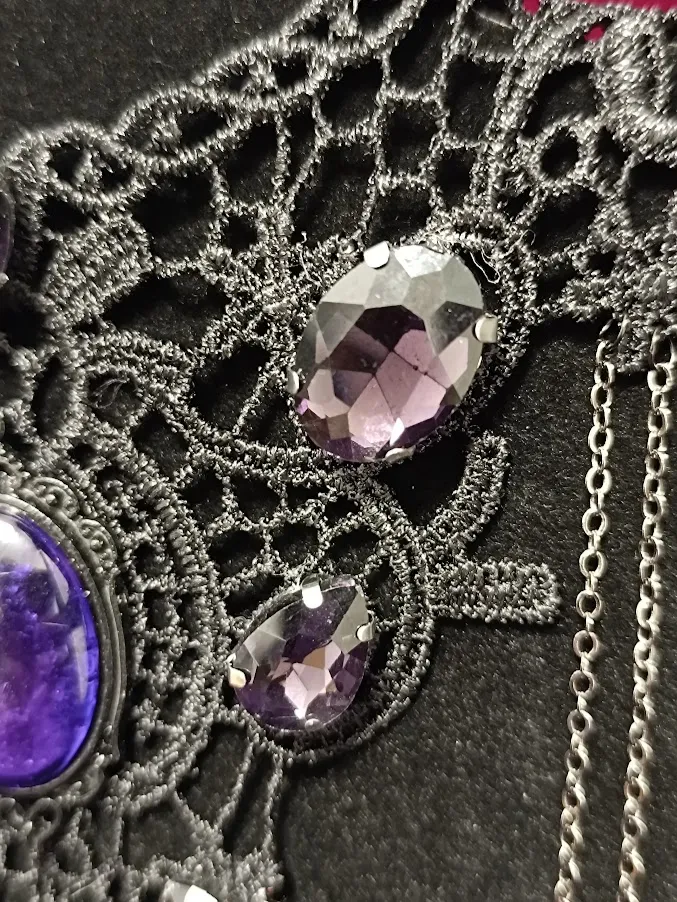 Gothic Lace Choker with Purple Crystals